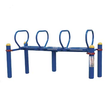鍛煉方法:雙手抓住鞍馬訓(xùn)練器的兩側(cè)把手,把身體撐起,在其上做各種回旋轉(zhuǎn)、擺動、平移運動,以次鍛煉臂力、軀